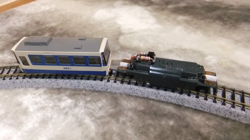 T車の集電板のせいか、少し重たがるので、M車のウエイトを追加し、ようやく完成しました。